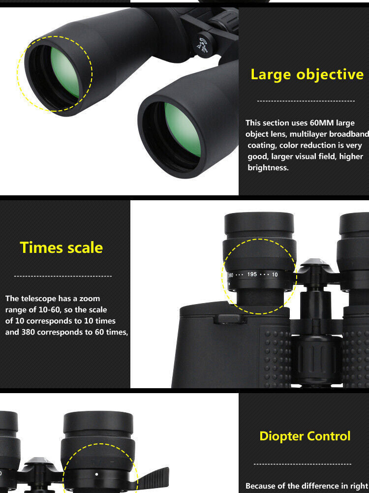 Application: bird appreciation, watching sports game or the concert, outdoor travelling, enjoying the prospect etc